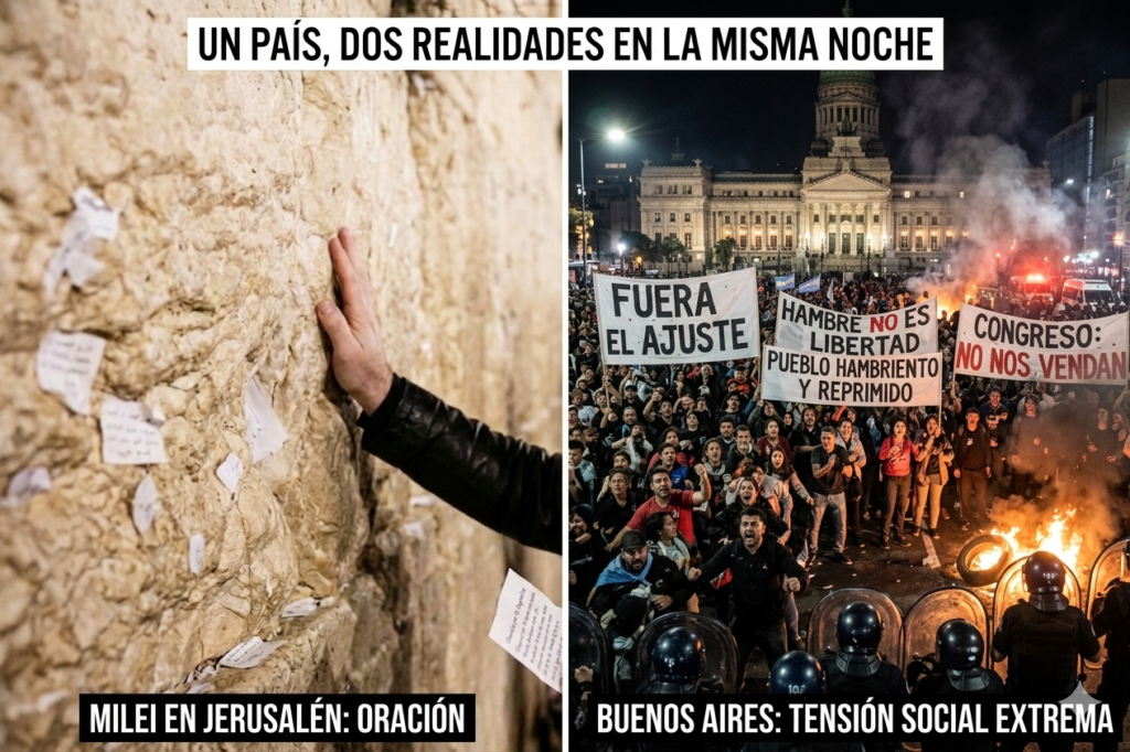 Mientras Milei reza en el muro de Los Lamentos, en Argentina se vive un clima de extrema tensión social