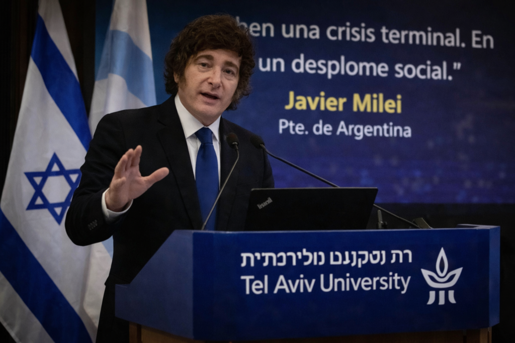 El Presidente recibió un diploma Honoris Causa de la Universidad de Bar-Ilan y reafirmó su alianza incondicional con Netanyahu. Volvió a atacar al periodismo y calificó al marxismo como “satánico y opuesto al programa de Dios”.